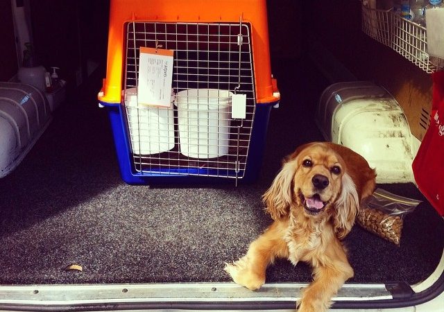 Just like with cats, it’s a good idea to get your dog used to his/her travel crate well in advance of the move.
